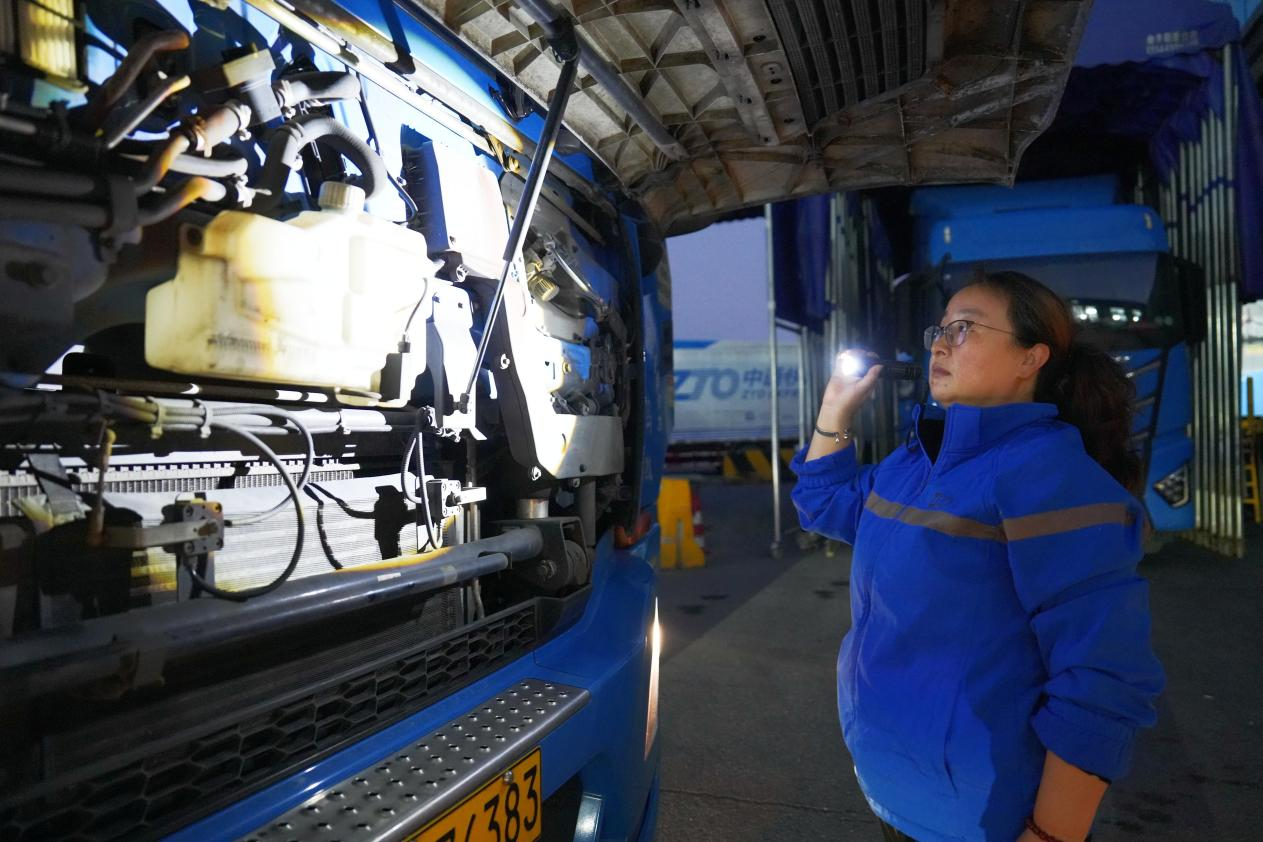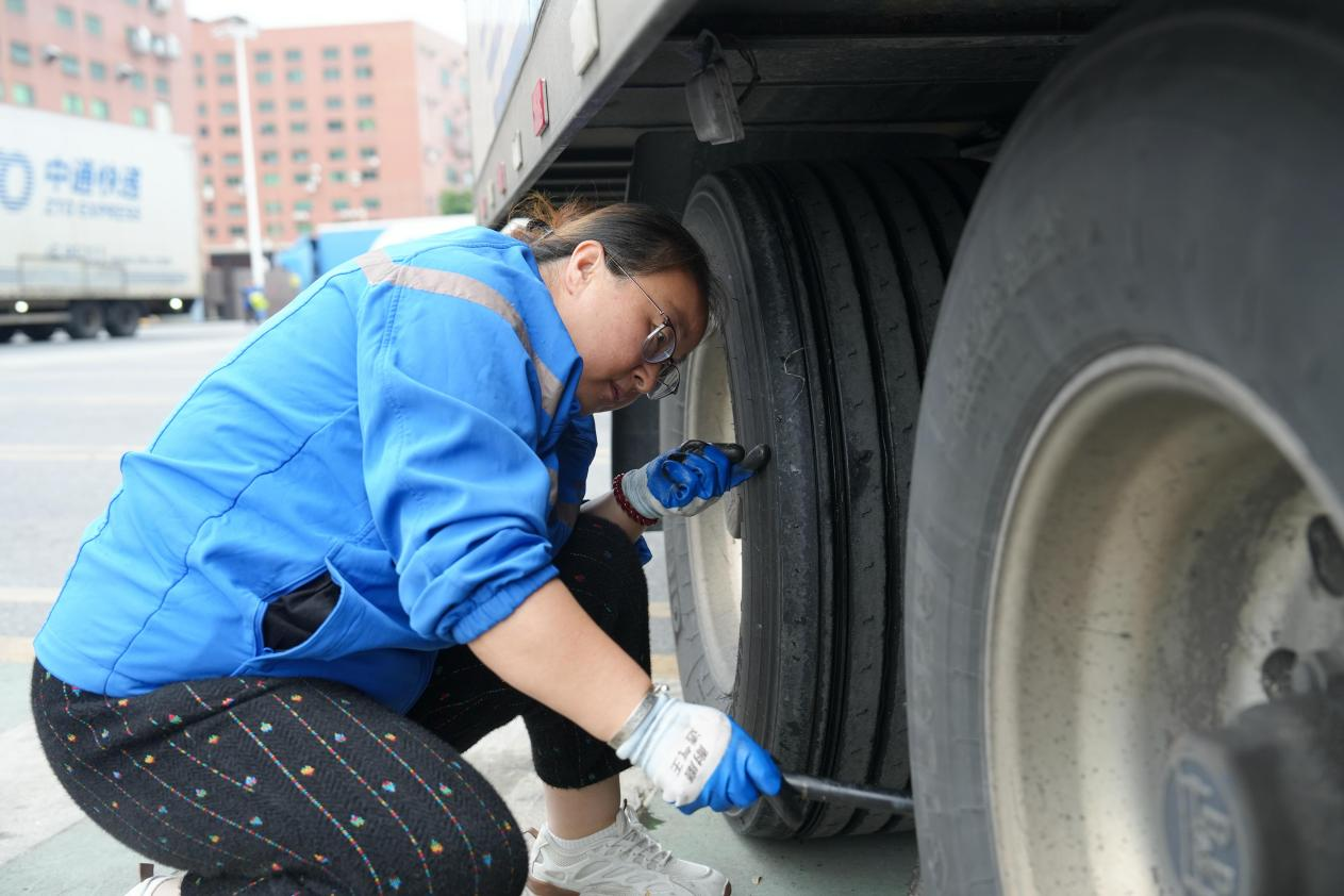 清晨五点半,位于广州花都的中通快递转运中心园区尚未完全苏醒。一辆蓝色的挂车旁,一个利落的身影正弯腰俯身,指尖划过轮胎纹路,目光扫过刹车管路——这是张玲英发车前雷打不动的十分钟“体检”。作为广州中通车队里唯一的女驾驶员,这位来自陕西的“卡嫂”,已在方向盘前度过了整整三十年。