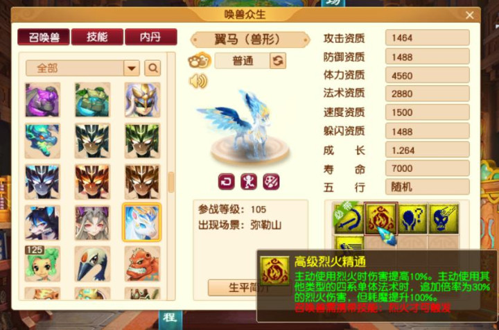 翼马兽型,也没什么亮点,有高级烈火精通。