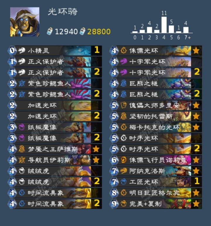 光环骑在迷你包上线之前其实就已经算还不错了,不过原本节奏没有现在这么舒服,而迷你包里从德鲁伊那边开源来的加速光环直接让光环骑的节奏顺畅太多,2费准时挂加速光环的话,下回合就能直接提巨熊之槌,再下回合拍傀儡大师多里安过明日巨匠格尔宾,然后就能启动了,有点像当年的神秘挑战者佛祖骑,中期这波超展开压力非常大,很多卡组应对起来都非常棘手,现在的强度还是挺不错的。