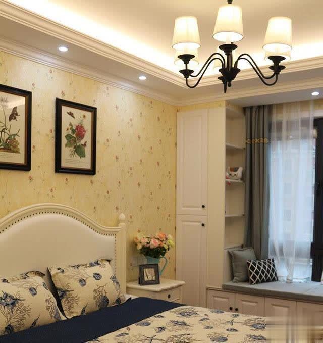 卧室走温情路线,墙纸很好看。